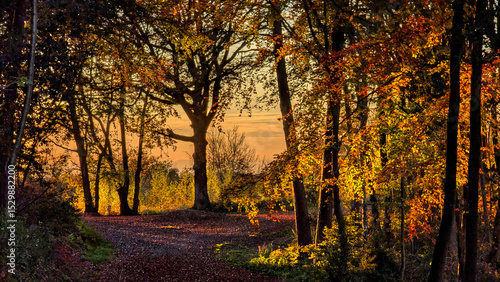 © David, Naklejka premium Herbstlicher Wald im goldenen Sonnenuntergang