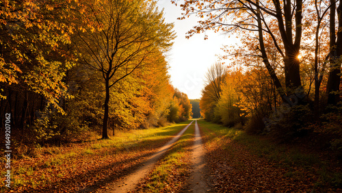 Obraz premium Herbstlicher Waldweg im Abendlicht