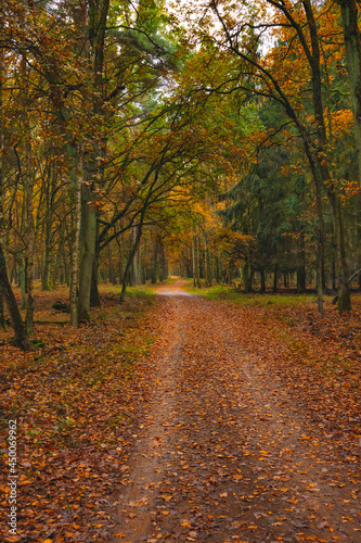 Naklejka premium Herbstspaziergang im durch den farbenfrohen Wald