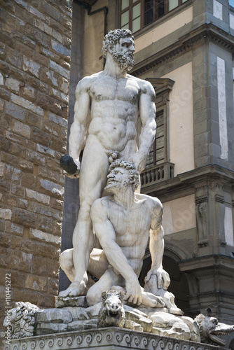 Naklejka premium Hercules & Cacus statue on the background of "Palazzo Vecchio" in "Piazza...