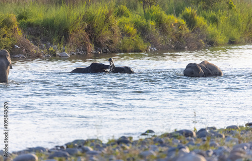 © Abhishek Mittal, Fototapeta premium Herd of Asiatic elephant (Elephas maximus) crossing the river at corbett forest.