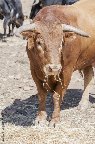 Fototapeta premium Herd of brave bulls grazing in the field, Andalusia, Spain