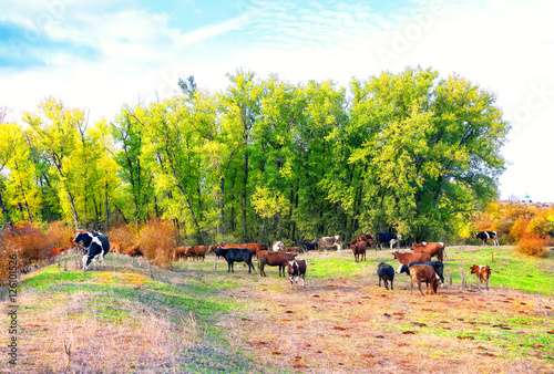 © alexlukin, Obraz premium Herd of cows in the meadow