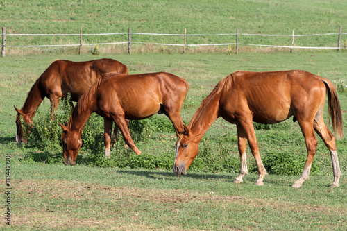 © acceptfoto, Fototapeta premium Herd of horses grazing in a summer meadow