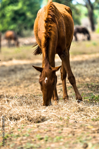 © tpap8228, Fototapeta premium Herd of horses grazing in field in field