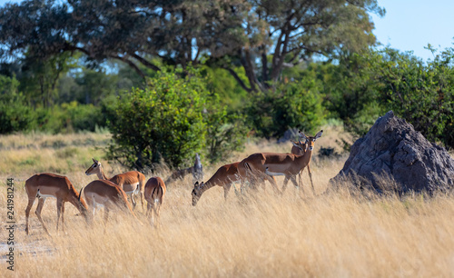 Naklejka premium herd of Impala antelope in natural habitat, Moremi Game Reserve Botswana,...