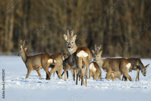Obraz premium herd of roe deers in winter