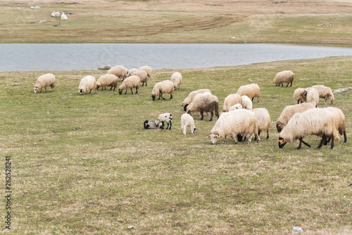 © focusandblur, Obraz premium Herd of sheep grazing high in the mountains