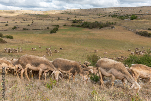 © bios48, Naklejka premium Herd of sheep in a large pasture on the causse mejean in the cevennes.
