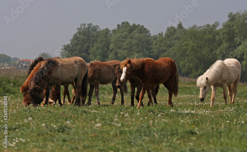 © Charlotte, Fototapeta premium herd of wild horses on pasture