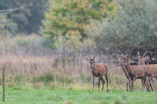 Fototapeta premium Herd of young deer in the wild (Cervus elaphus)