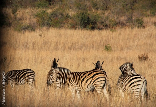 © BENH, Obraz premium Herd of Zebras grazing in the long grass