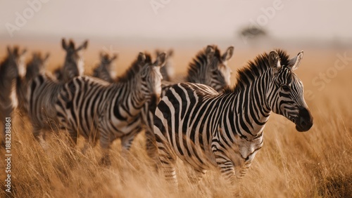 © darshika, Fototapeta premium Herd of Zebras in African Savannah