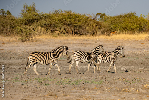 © vaclav, Fototapeta premium herd of zebras in the African savanna at sunset botswana