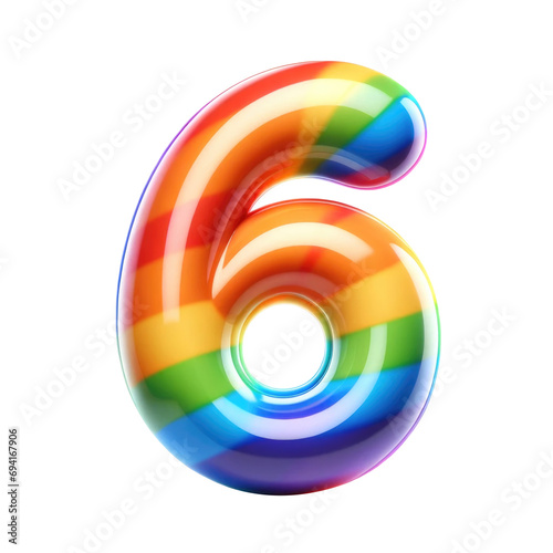 Obraz premium Here is the number 6 created as a balloon character with rainbow colors on a white background