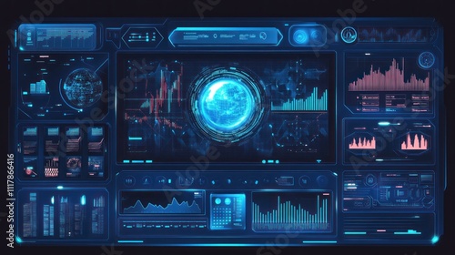 © mas, Obraz premium Here's a description and keywords for your image.. Global data visualization on futuristic interface.