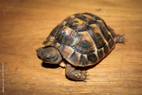 Obraz premium Hermann's tortoise (Testudo hermanni) cute young closeup