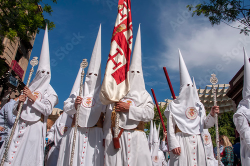 © Antonio ciero, Fototapeta premium hermanos nazarenos de la semana santa de Sevilla