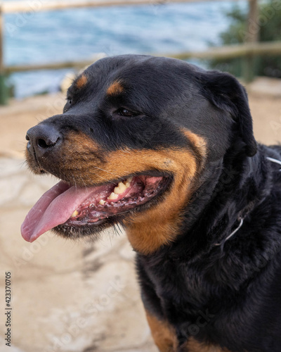 Fototapeta premium Hermoso ejemplar de Rottweiler aleman