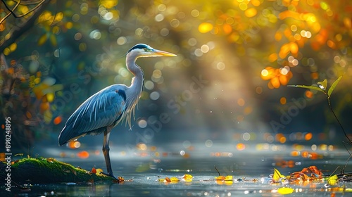 © Яна Ерік Татевосян, Fototapeta premium Heron in nature near the lake. Selective focus.