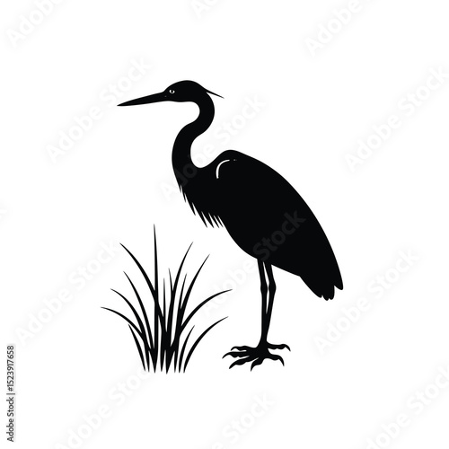© MstShanag, Obraz premium Heron Marshland Vector Silhouette Elegant