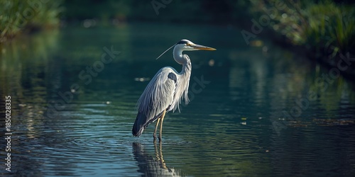 © The 2R Artificiality, Fototapeta premium Heron perched among garden plants, illustrating avian presence in natural landscape