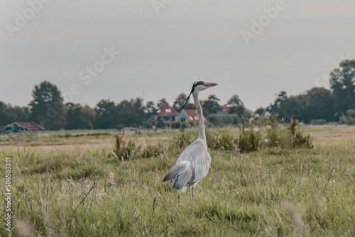 © Tibi.lost.in.nature, Obraz premium Heron standing in the field.