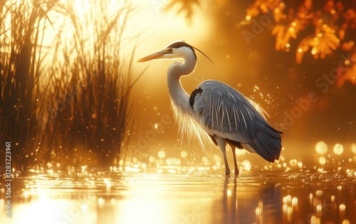© Design By Reiga, Fototapeta premium Heron sunrise autumn lake nature wildlife
