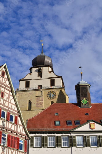 Fototapeta premium Herrenberg Stiftskirche und Fachwerk