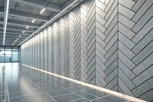 © CarlosAlberto, Obraz premium Herringbone, Futuristic Wall background with tiles. Concrete, tile Wallpaper with 3D, Polished blocks. 3D Render - generated by ai