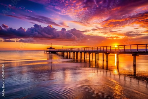 Fototapeta premium Hervey Bay Jetty Sunset - Scenic Coastal View with Copy Space for Text