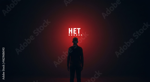 Fototapeta premium Het man silhouette dark red background light figure standing mystery shadow person human shape concept