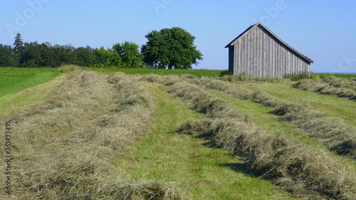 © turtles2, Obraz premium Heuernte mit einer Scheune auf der Wiese