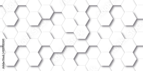 Fototapeta premium Hexagon background technology texture. Abstract hexagonal mesh cell Surface polygon pattern with glowing hexagon paper texture and futuristic business. Abstract honeycomb mosaic white background.