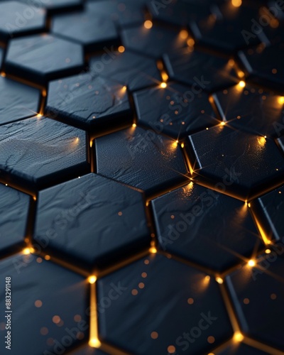 © Vlad Kapusta, Obraz premium hexagon background with orange light