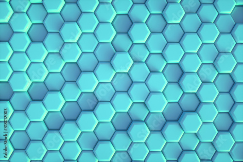 © Bokehstore, Naklejka premium Hexagon blue pattern. Abstract futuristic background.