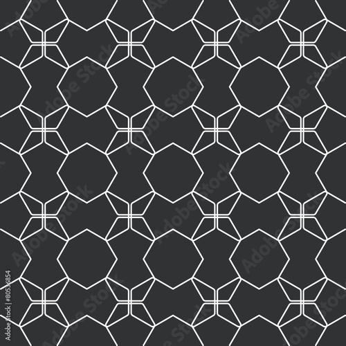 © kubko, Fototapeta premium Hexagon line pattern. Repeat ornament. Black and white color.