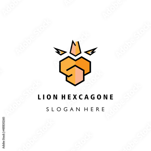 © rokhmatulloh, Obraz premium hexagon logo lion illustration design vector template