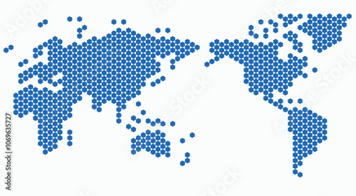 © tanarch, Fototapeta premium Hexagon shape world map on white background.