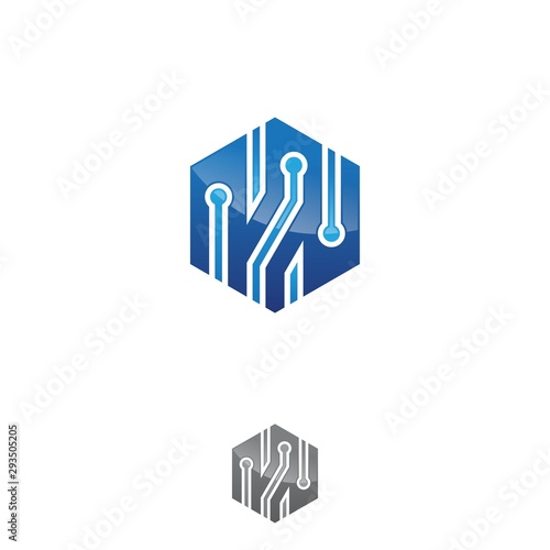 Fototapeta premium Hexagon tech vector design graphic with color blue for web icon or smartphone...