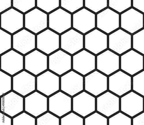 © Eugene Ga, Obraz premium Hexagon vector pattern. Plain hexagon grid with bold cells. Large hexagon shapes. Seamless tileable vector illustration.