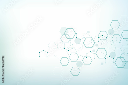 Fototapeta premium Hexagonal abstract background. Big Data Visualization. Global network connection. Medical, technology, science background. Vector illustration.
