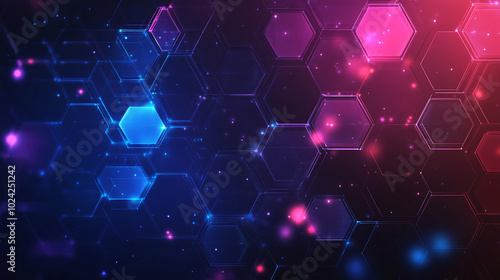 Fototapeta premium Hexagonal abstract background. Glowing Hexagonal Patterns in Blue and Pink...