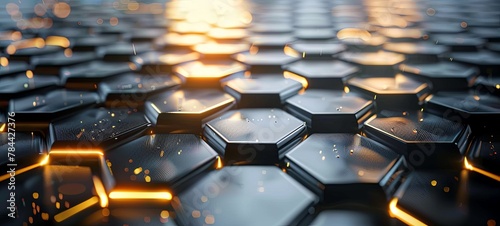 © Anatoll Paveel, Obraz premium Hexagonal abstract background. metal background with light. 3d. generative ai