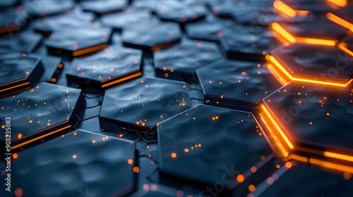 © Michael, Obraz premium Hexagonal abstract metal background with light