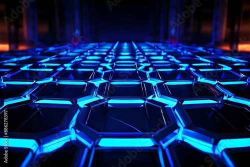 © Creator_Pro, Obraz premium Hexagonal abstract metal background with light ai generated