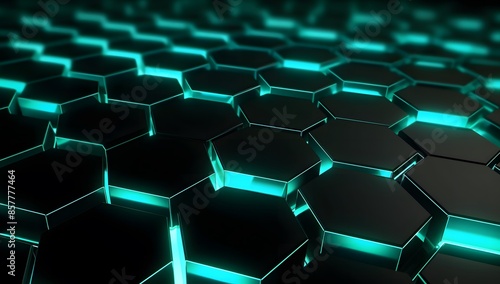 © Dzmitry Halavach, Obraz premium Hexagonal background with neon light, game wallpaper for setup
