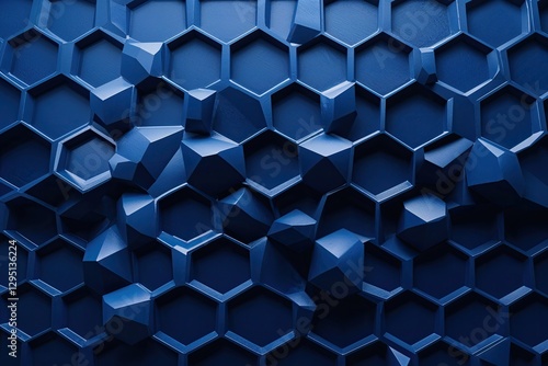 © Michael, Fototapeta premium Hexagonal Dark Blue Background Texture with 3D Abstract Design Elements