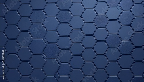 Fototapeta premium Hexagonal dark blue navy background texture placeholder, radial center space,...