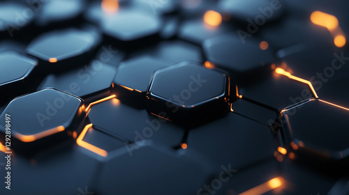 Obraz premium Hexagonal Grid with Glowing Orange Lights and Dark Metallic Surface